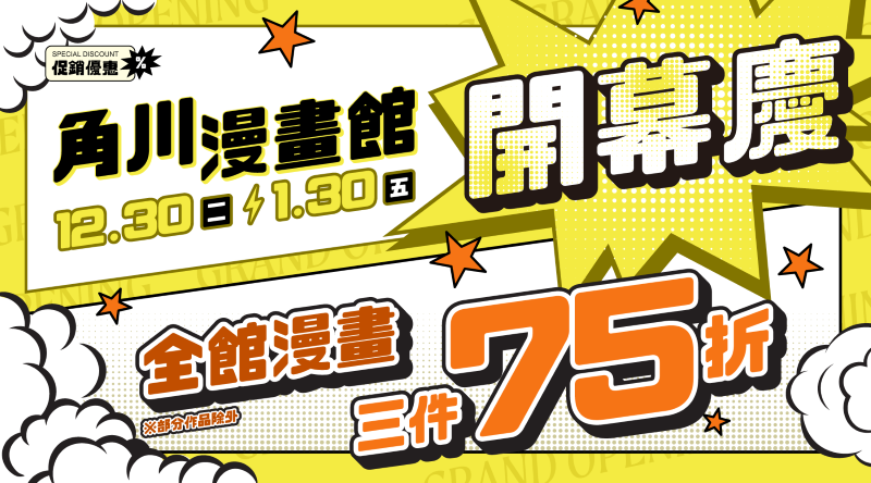 .「角川漫畫館 開幕慶 全館漫畫三件75折(部分新刊作品除外)」