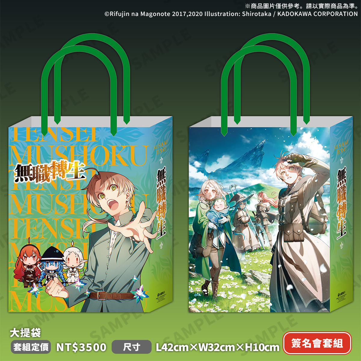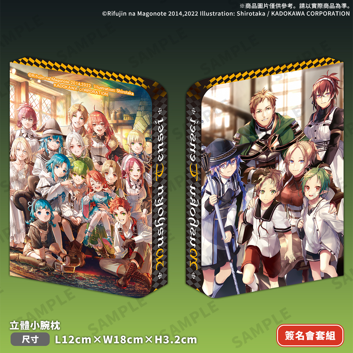 《無職轉生》自2012年於網路連載以來便迅速爆紅,以「人生重來一次是否能真正改變」為核心主題,描繪主角魯迪烏斯在異世界重新開始人生的奇幻冒險。作品以扎實的世界觀、人物群像與成長曲線獲得全球讀者熱烈支持,小說系列累積銷量突破千萬冊,動畫更在世界各地創下亮眼聲量,被視為近年最具代表性的異世界作品之一。簽名資格套組限定收錄以《無職轉生》主角與愛妻們的「壓克力簽名板」、「壓克力萬年曆」、「應援毛巾」與象徵幸運加持的「搶購勝利組御守」,更特別附上正反全家福照的「立體小腕枕」;以及「《無職轉生~蛇足篇~ (3)》」普通版小說,所有內容皆收錄於限定「大提袋」。