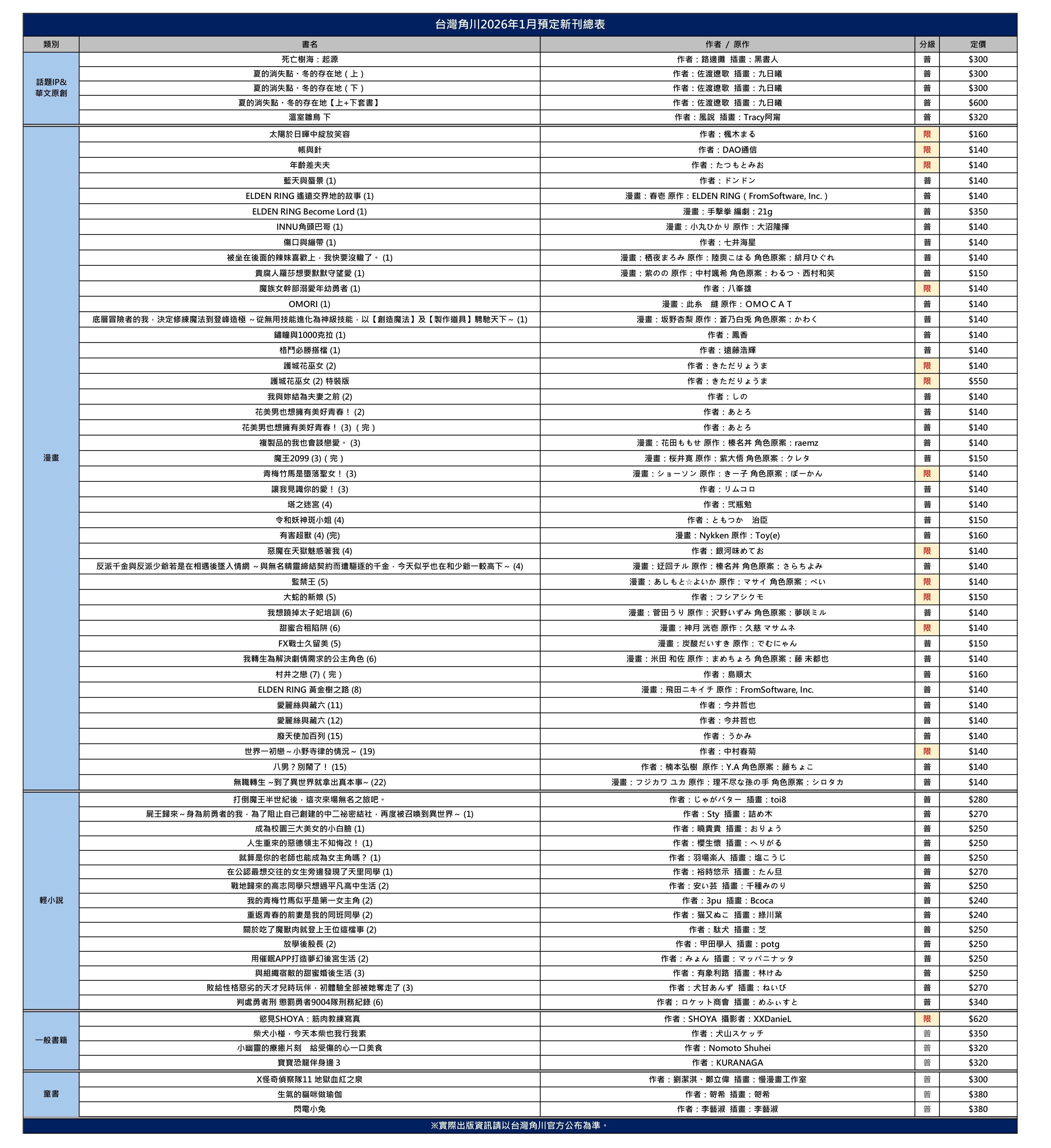 ※實際出版資訊請以台灣角川官方最終公布為準。