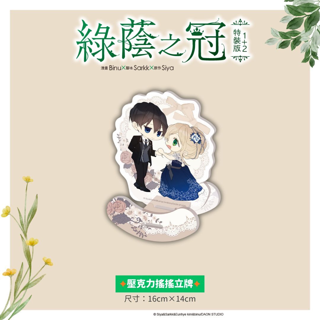 愛恨交織的偽骨科姊弟戀!《綠蔭之冠【1+2特裝版】》本次收錄多款精美限定周邊。除了「單行本1+2集(皆含首刷限定精美小卡)」,還有以Q版角色形象為主題設計的「壓克力搖搖立牌」,以及將精美插畫融入實用場景的「多功能防塵滑鼠墊」和極具收藏價值的「銀箔海報組」;另外還有「可愛人生四格+情緒人生四格」透過趣味四格描繪蘭不同的一面,為緊張的主線劇情增添輕鬆可愛的日常風貌。