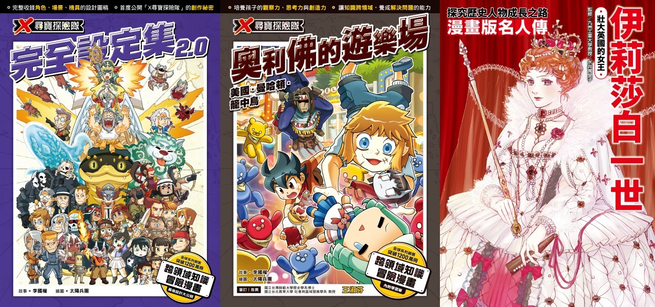 小角落文化的童書系列,帶來小學生界的冒險王《X尋寶探險隊54》、《X尋寶探險隊完全設定集2.0》;深獲大人小孩歡迎的名人傳系列新刊《漫畫版名人傳:伊莉莎白一世》和小朋友一起寓教於樂!
