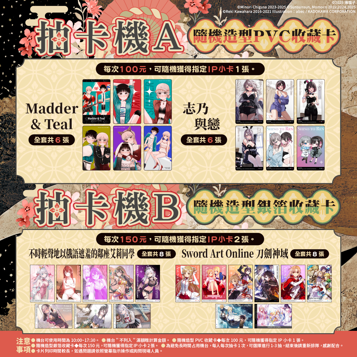 ● 為避免長時間占用機台,每人每次抽卡1次,可選擇進行1-3抽,結束後請重新排隊,感謝配合。