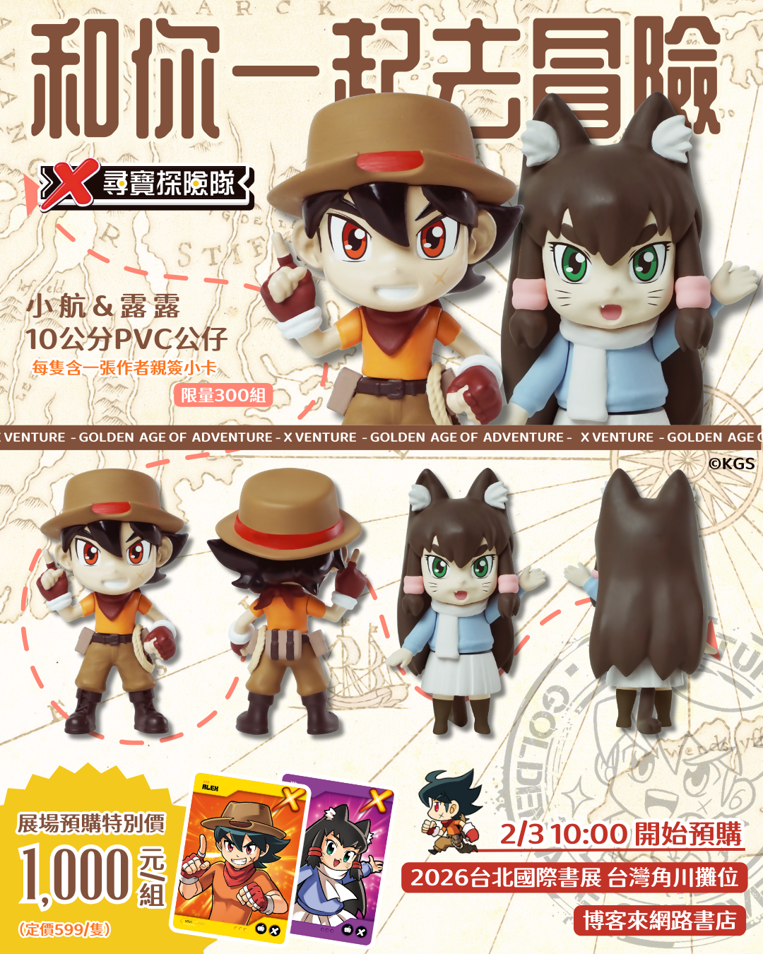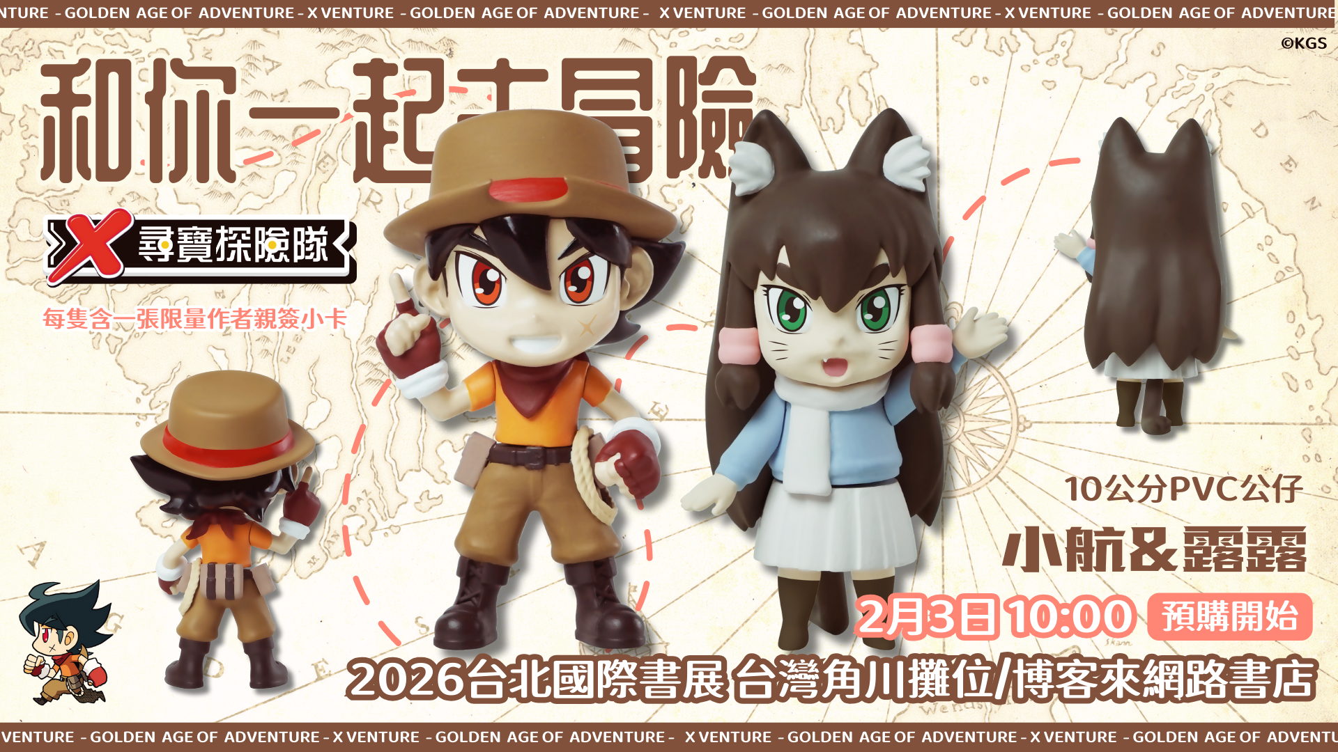 風靡小學生界的「X尋寶探險隊」中,擁有許多性格迥異、充滿魅力的角色們,其中陪伴大家四處去冒險的人當屬「小航」和「露露」!想要成為世界第一冒險王的小航,以及需要解開詛咒的貓女露露,一起踏上充滿刺激的冒險旅程,「2026台北國際書展」將迎來兩人首次的「實體化」!