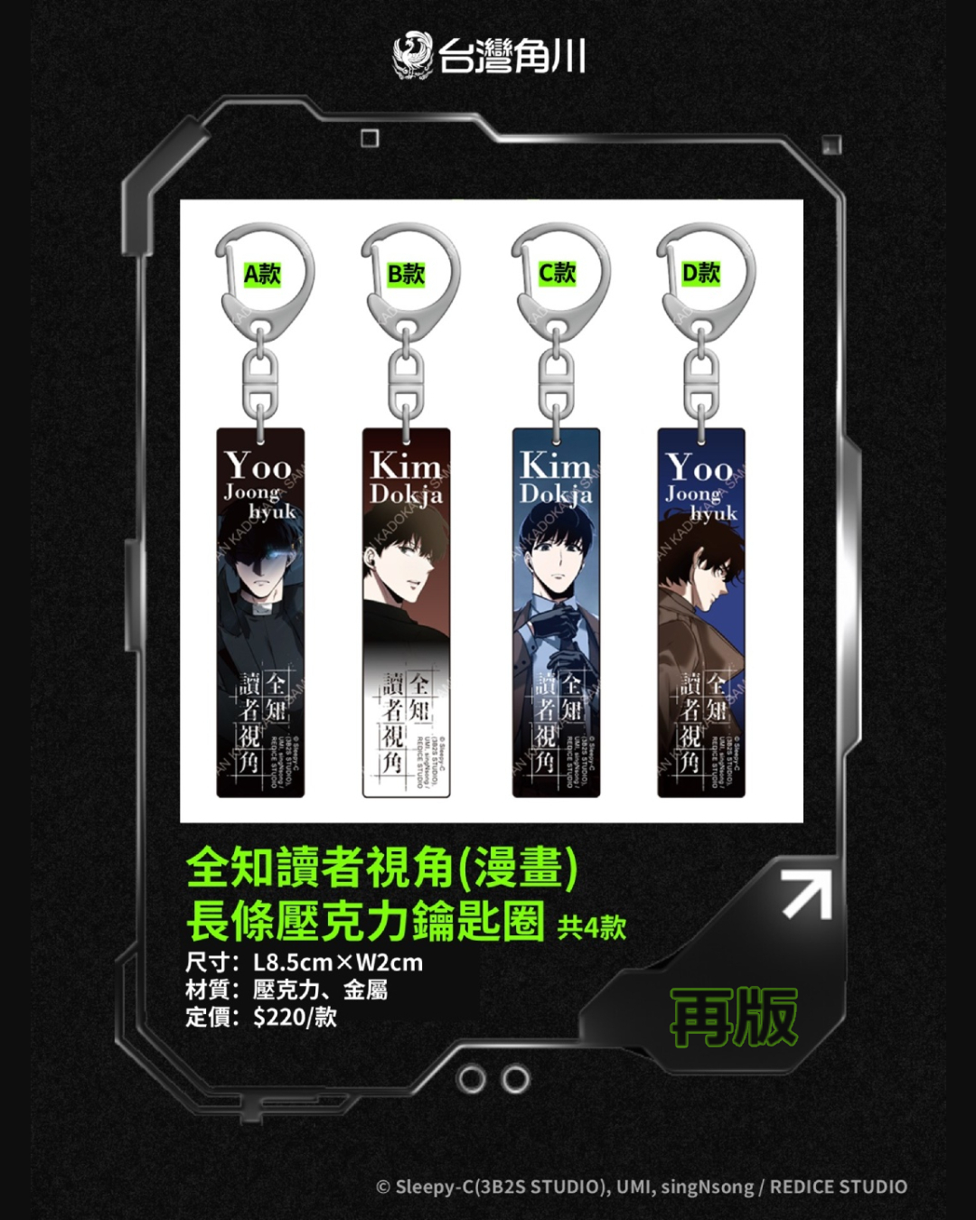全知讀者視角(漫畫) 長條壓克力鑰匙圈 A、B、C、D款