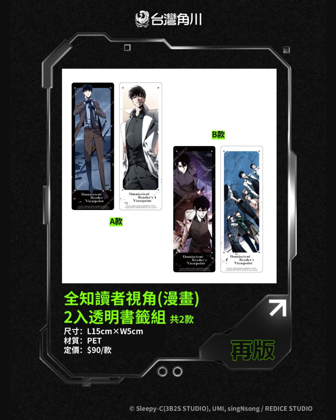 全知讀者視角(漫畫) 2入透明書籤組 A、B款