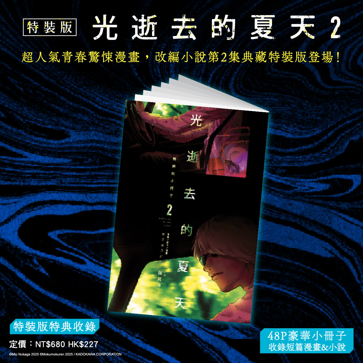 由日本新銳漫畫家モクモクれん創作、以細膩筆觸勾勒深山禁忌與少年情誼的現象級作品《光逝去的夏天》,其改編小說版在讀者熱烈期盼下,正式宣布將於今年五月推出續篇小說第二集。台灣角川於今日同步公開「特裝版」精美特典情報,並即日起展開全台實體通路與網路書店的限時事前預購。