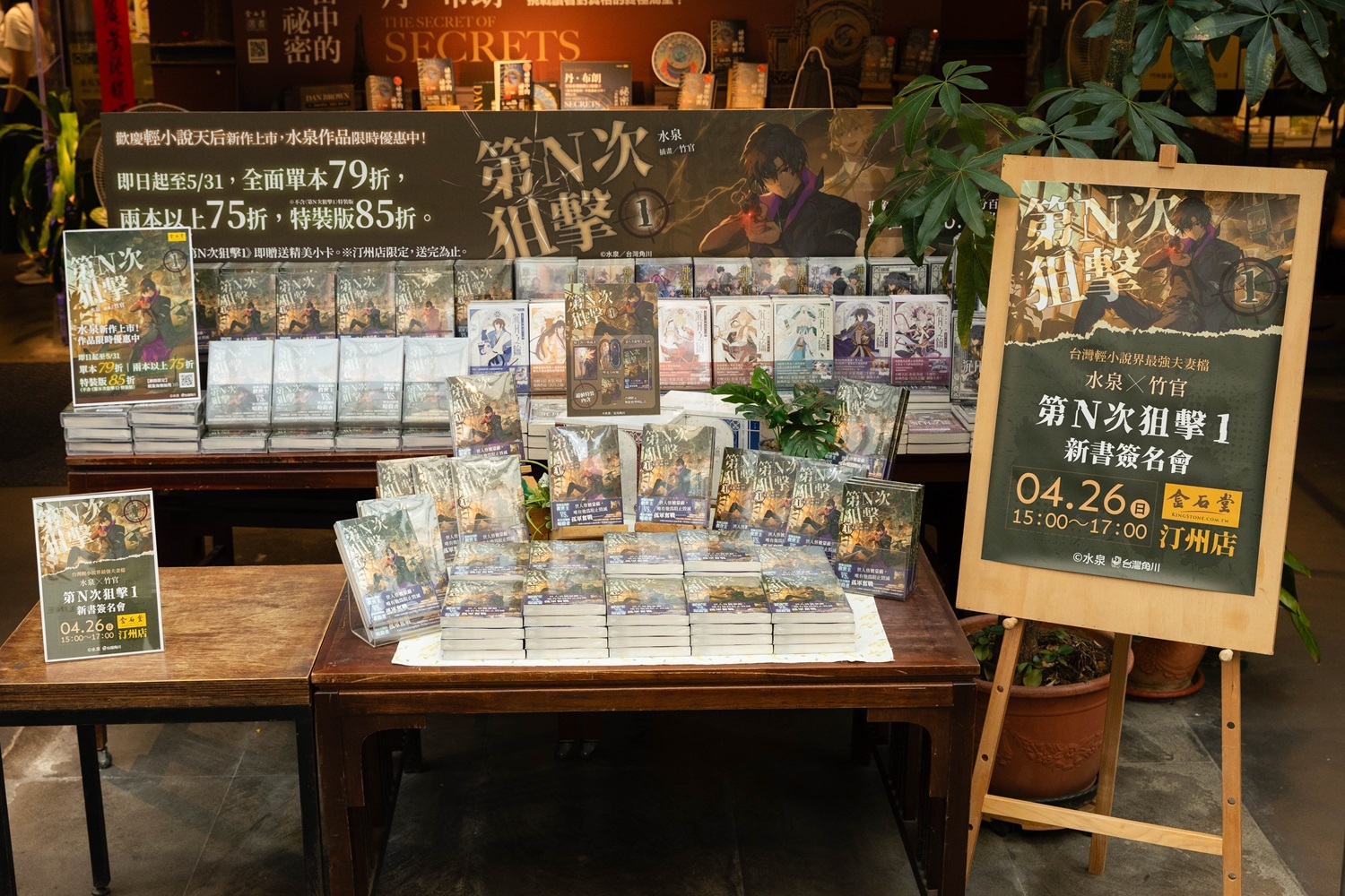 台灣輕小說界超人氣作家水泉與插畫家丈夫竹官,今年於KadoKado角角者推出話題新作《第N次狙擊》,並於4月23日正式發行單行本第一集,同步推出收錄多樣精美特典的特裝版。上週末(26日)於金石堂汀州店舉辦新書簽名會,吸引眾多熱情粉絲到場支持,水泉與竹官在活動中親切與讀者交流,現場氣氛熱烈且溫馨。