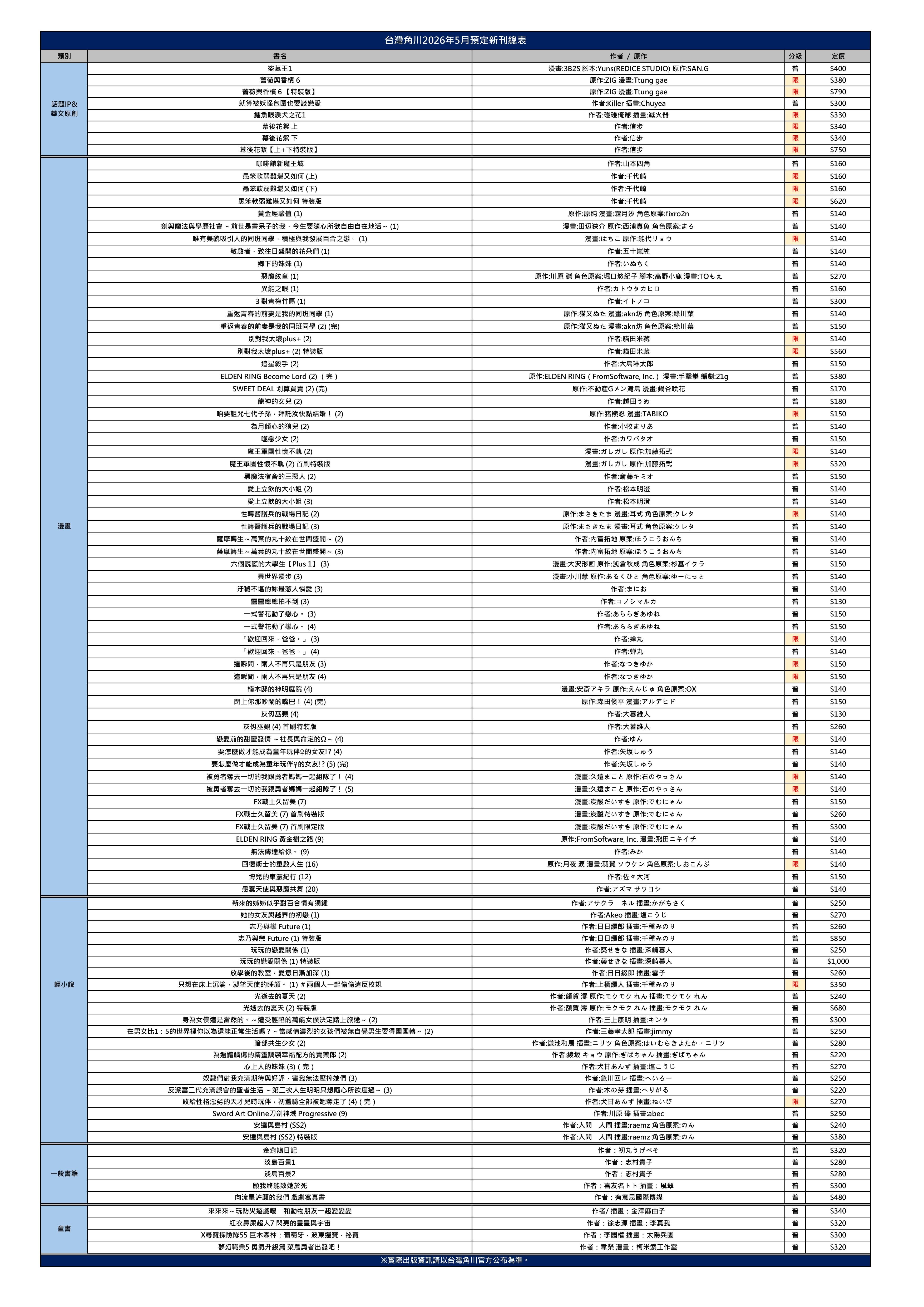 【完整書單】正確出書日請以台灣角川官方公布為準