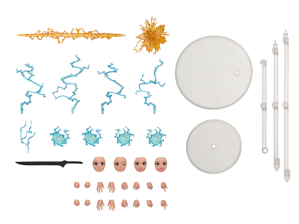 ・配件有「砂鐵劍」、「5種手部零件」「泳裝用5種手部零件」「展示用台座」。